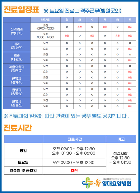 평일 09:00 ~ 18:00 / 주말 및 공휴일 휴진